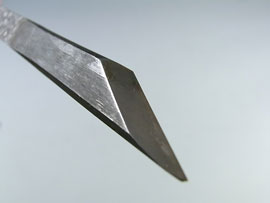 「盆栽用 神作り彫刻刀 切出し 左」左用という訳ではないのですが刃が逆についていることから 「左」と言われています。 神を削ったりするための彫刻刀です。 全長 → 195mm ...