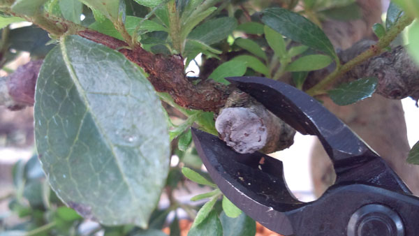 今年からさつき盆栽を始めた初心者です。剪定鋏では、本枝に残る小枝切り残し部の切除がきれいにできなくて困っていた所、枝切り専用の「又枝切り鋏」があることを知りました。